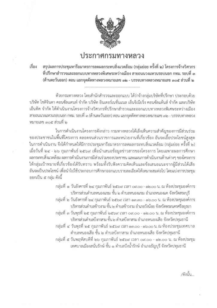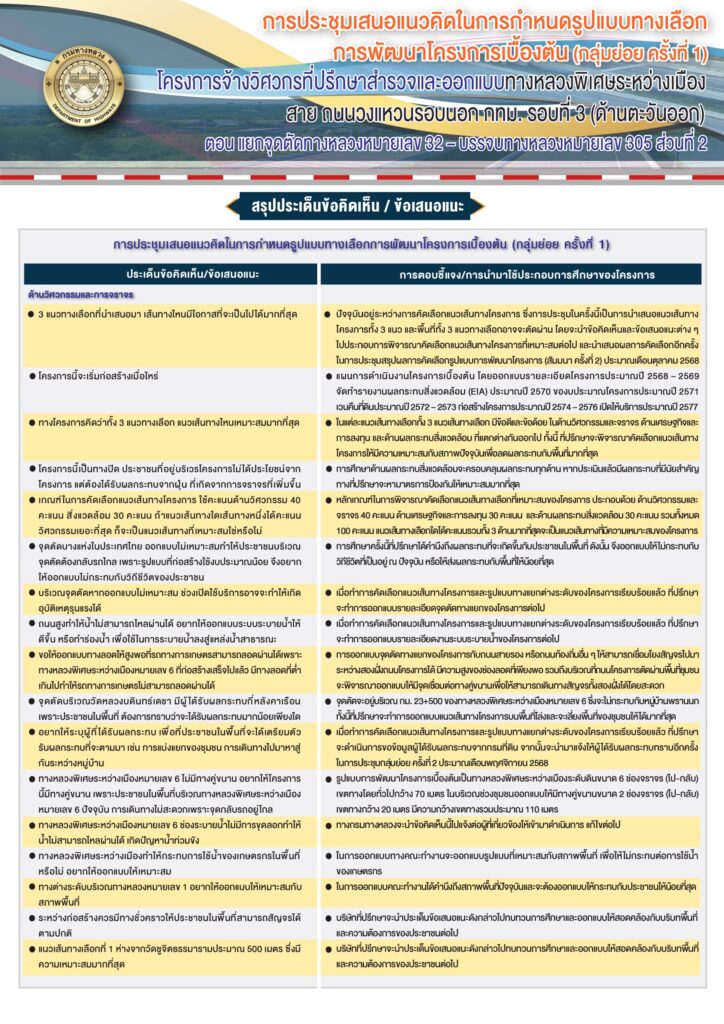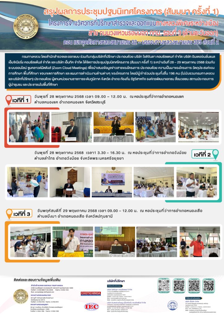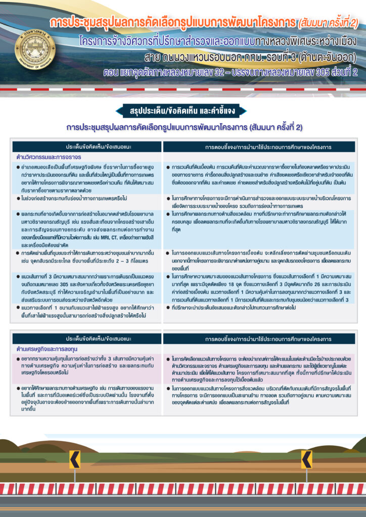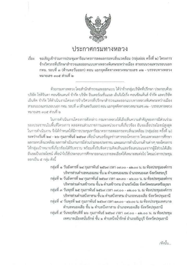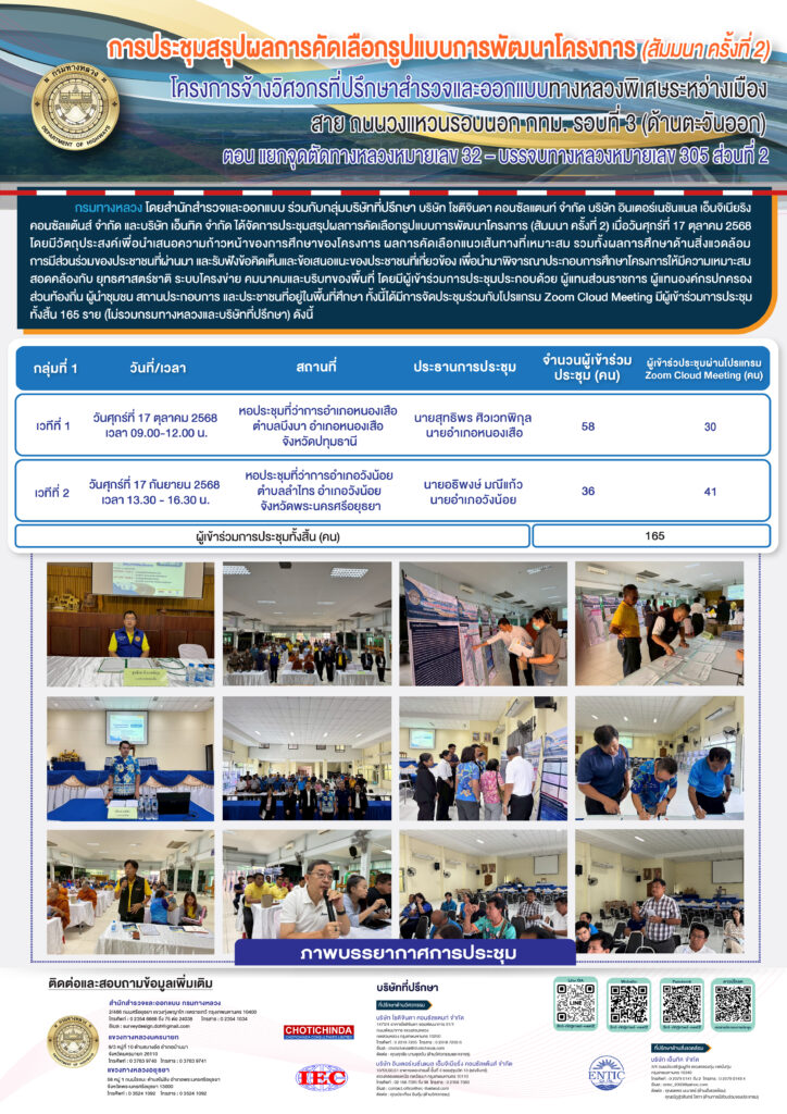 ข่าวประชาสัมพันธ์ ประกาศสรุปการประชุมหารือมาตรการลกผลกระทบสิ่งแวดล้อม (กลุ่มย่อย ครั้งที่ 2) โครงการจ้างวิศวกรที่ปรึกษาสำรวจและออกแบบทางหลวงพิเศษระหว่างเมืองสายถนนวงแหวนรอบนอก กทม. รอบที่ 3 (ด้านตะวันออก) ตอน แยกจุดตัดทางหลวงหมายเลข 32 – บรรจบทางหลวงหมายเลข 305 ส่วนที่ 2 ขอเชิญเข้าร่วมการประชุมหารือมาตรการลกผลกระทบสิ่งแวดล้อม (กลุ่มย่อย ครั้งที่ 2) โครงการจ้างวิศวกรที่ปรึกษาสำรวจและออกแบบทางหลวงพิเศษระหว่างเมืองสายถนนวงแหวนรอบนอก กทม. รอบที่ 3 (ด้านตะวันออก) ตอน แยกจุดตัดทางหลวงหมายเลข 32 – บรรจบทางหลวงหมายเลข 305 ส่วนที่ 2 ขอเชิญเข้าร่วมการประชุมหารือมาตรการลกผลกระทบสิ่งแวดล้อม (กลุ่มย่อย ครั้งที่ 2) โครงการจ้างวิศวกรที่ปรึกษาสำรวจและออกแบบทางหลวงพิเศษระหว่างเมืองสายถนนวงแหวนรอบนอก กทม. รอบที่ 3 (ด้านตะวันออก) ตอน แยกจุดตัดทางหลวงหมายเลข 32 – บรรจบทางหลวงหมายเลข 305 ส่วนที่ 2 ประกาศสรุปผลการคัดเลือกรูปแบบการพัฒนาโครงการ (สัมมนา ครั้งที่ 2) โครงการจ้างวิศวกรที่ปรึกษาสำรวจและออกแบบทางหลวงพิเศษระหว่างเมืองสายถนนวงแหวนรอบนอก กทม. รอบที่ 3 (ด้านตะวันออก) ตอน แยกจุดตัดทางหลวงหมายเลข 32 – บรรจบทางหลวงหมายเลข 305 ส่วนที่ 2 ขอเชิญเข้าร่วมการประชุมสรุปผลการคัดเลือกรูปแบบการพัฒนาโครงการ (สัมมนา ครั้งที่ 2) โครงการจ้างวิศวกรที่ปรึกษาสำรวจและออกแบบทางหลวงพิเศษระหว่างเมืองสายถนนวงแหวนรอบนอก กทม. รอบที่ 3 (ด้านตะวันออก) ตอน แยกจุดตัดทางหลวงหมายเลข 32 – บรรจบทางหลวงหมายเลข 305 ส่วนที่ 2 ขอเชิญเข้าร่วมประชุมเสนอแนวคิดในการกำหนดรูปแบบทางเลือกการพัฒนาโครงการเบื้องต้น (สัมมนา ครั้งที่ 1) โครงการจ้างวิศวกรที่ปรึกษาสำรวจและออกแบบทางหลวงพิเศษระหว่างเมืองสายถนนวงแหวนรอบนอก กทม. รอบที่ 3 (ด้านตะวันออก) ตอน แยกจุดตัดทางหลวงหมายเลข 32 – บรรจบทางหลวงหมายเลข 305 ส่วนที่ 2 ขอเชิญเข้าร่วมประชุมปฐมนิเทศโครงการ (สัมมนา ครั้งที่ 1) โครงการจ้างวิศวกรที่ปรึกษาสำรวจและออกแบบทางหลวงพิเศษระหว่างเมืองสายถนนวงแหวนรอบนอก กทม. รอบที่ 3 (ด้านตะวันออก) ตอน แยกจุดตัดทางหลวงหมายเลข 32 – บรรจบทางหลวงหมายเลข 305 ส่วนที่ 2 ระหว่างวันที่ 28 – 29 พฤษภาคม 2568 ความเป็นมาของโครงการ ความเป็นมา เหตุผลและความจำเป็นของโครงการ ในปัจจุบันโครงข่ายทางหลวงที่มีความสำคัญ มักจะมีจุดเริ่มต้นจากพื้นที่กรุงเทพมหานครไปยังพื้นที่ภาคต่างๆ ของประเทศ ในลักษณะของแนวเส้นทางออกจากศูนย์กลาง หรือ Radial และจะมีโครงข่ายวงแหวน หรือ Ring ซึ่งเป็นโครงข่ายในลักษณะคล้ายกับใยแมงมุม อยู่ในบริเวณโดยรอบของพื้นที่