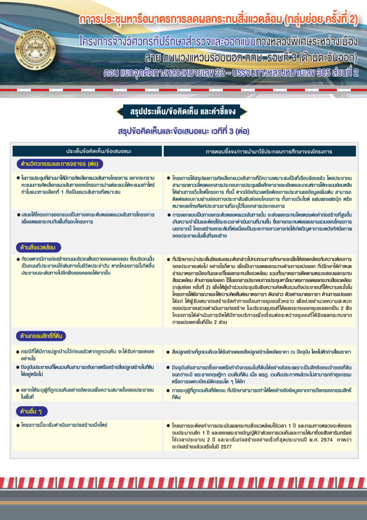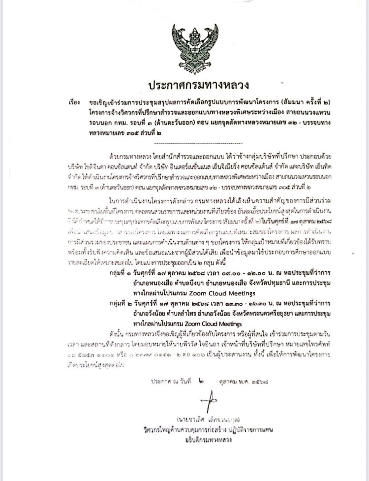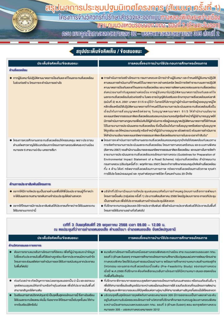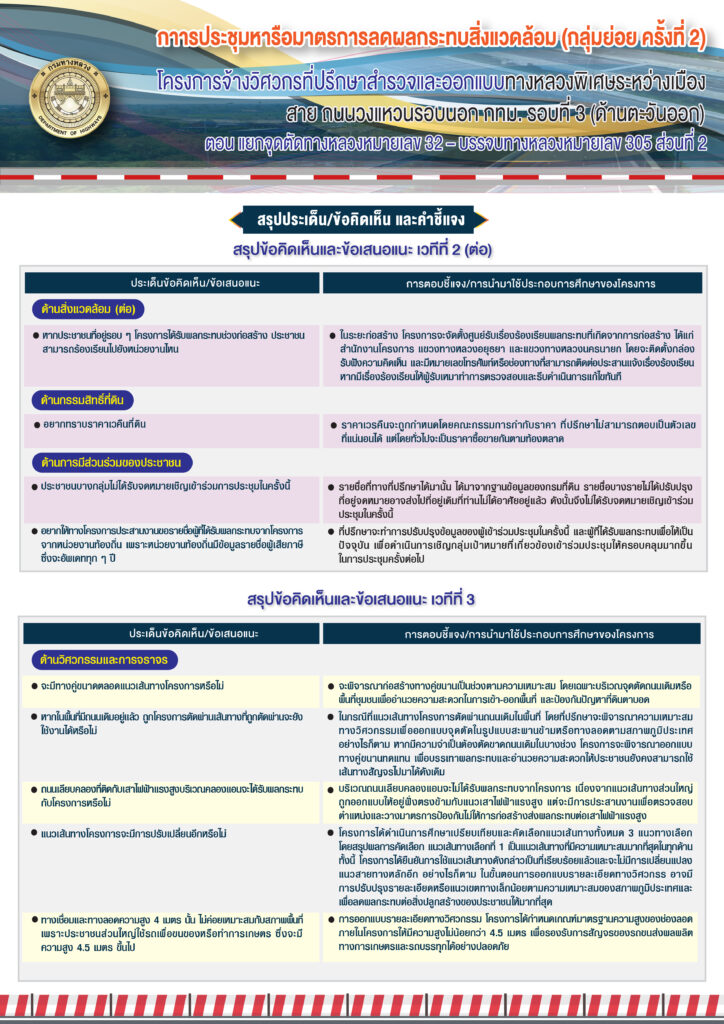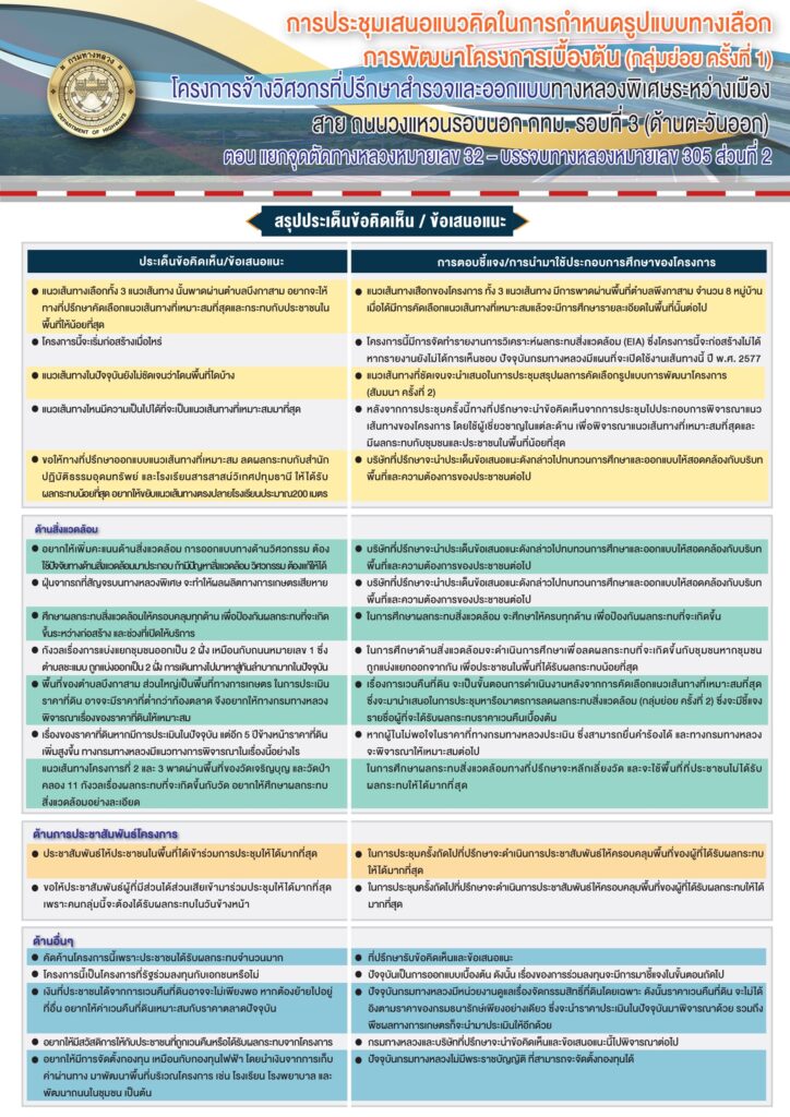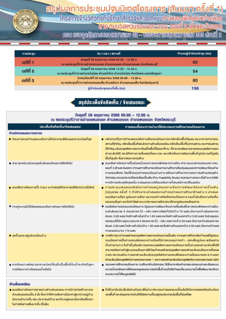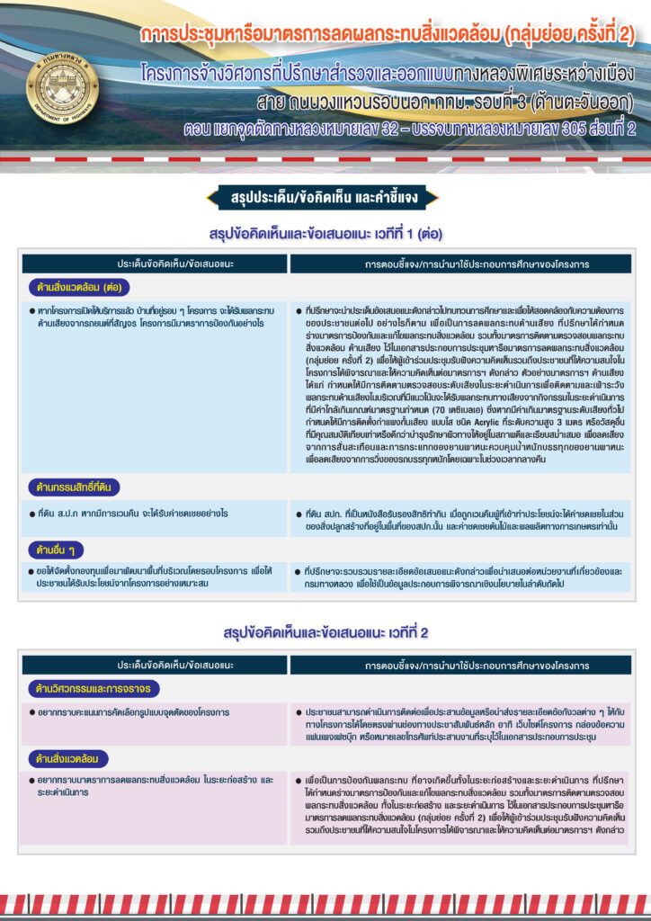 ข่าวประชาสัมพันธ์ ประกาศสรุปการประชุมหารือมาตรการลกผลกระทบสิ่งแวดล้อม (กลุ่มย่อย ครั้งที่ 2) โครงการจ้างวิศวกรที่ปรึกษาสำรวจและออกแบบทางหลวงพิเศษระหว่างเมืองสายถนนวงแหวนรอบนอก กทม. รอบที่ 3 (ด้านตะวันออก) ตอน แยกจุดตัดทางหลวงหมายเลข 32 – บรรจบทางหลวงหมายเลข 305 ส่วนที่ 2 ขอเชิญเข้าร่วมการประชุมหารือมาตรการลกผลกระทบสิ่งแวดล้อม (กลุ่มย่อย ครั้งที่ 2) โครงการจ้างวิศวกรที่ปรึกษาสำรวจและออกแบบทางหลวงพิเศษระหว่างเมืองสายถนนวงแหวนรอบนอก กทม. รอบที่ 3 (ด้านตะวันออก) ตอน แยกจุดตัดทางหลวงหมายเลข 32 – บรรจบทางหลวงหมายเลข 305 ส่วนที่ 2 ขอเชิญเข้าร่วมการประชุมหารือมาตรการลกผลกระทบสิ่งแวดล้อม (กลุ่มย่อย ครั้งที่ 2) โครงการจ้างวิศวกรที่ปรึกษาสำรวจและออกแบบทางหลวงพิเศษระหว่างเมืองสายถนนวงแหวนรอบนอก กทม. รอบที่ 3 (ด้านตะวันออก) ตอน แยกจุดตัดทางหลวงหมายเลข 32 – บรรจบทางหลวงหมายเลข 305 ส่วนที่ 2 ประกาศสรุปผลการคัดเลือกรูปแบบการพัฒนาโครงการ (สัมมนา ครั้งที่ 2) โครงการจ้างวิศวกรที่ปรึกษาสำรวจและออกแบบทางหลวงพิเศษระหว่างเมืองสายถนนวงแหวนรอบนอก กทม. รอบที่ 3 (ด้านตะวันออก) ตอน แยกจุดตัดทางหลวงหมายเลข 32 – บรรจบทางหลวงหมายเลข 305 ส่วนที่ 2 ขอเชิญเข้าร่วมการประชุมสรุปผลการคัดเลือกรูปแบบการพัฒนาโครงการ (สัมมนา ครั้งที่ 2) โครงการจ้างวิศวกรที่ปรึกษาสำรวจและออกแบบทางหลวงพิเศษระหว่างเมืองสายถนนวงแหวนรอบนอก กทม. รอบที่ 3 (ด้านตะวันออก) ตอน แยกจุดตัดทางหลวงหมายเลข 32 – บรรจบทางหลวงหมายเลข 305 ส่วนที่ 2 ขอเชิญเข้าร่วมประชุมเสนอแนวคิดในการกำหนดรูปแบบทางเลือกการพัฒนาโครงการเบื้องต้น (สัมมนา ครั้งที่ 1) โครงการจ้างวิศวกรที่ปรึกษาสำรวจและออกแบบทางหลวงพิเศษระหว่างเมืองสายถนนวงแหวนรอบนอก กทม. รอบที่ 3 (ด้านตะวันออก) ตอน แยกจุดตัดทางหลวงหมายเลข 32 – บรรจบทางหลวงหมายเลข 305 ส่วนที่ 2 ขอเชิญเข้าร่วมประชุมปฐมนิเทศโครงการ (สัมมนา ครั้งที่ 1) โครงการจ้างวิศวกรที่ปรึกษาสำรวจและออกแบบทางหลวงพิเศษระหว่างเมืองสายถนนวงแหวนรอบนอก กทม. รอบที่ 3 (ด้านตะวันออก) ตอน แยกจุดตัดทางหลวงหมายเลข 32 – บรรจบทางหลวงหมายเลข 305 ส่วนที่ 2 ระหว่างวันที่ 28 – 29 พฤษภาคม 2568 ความเป็นมาของโครงการ ความเป็นมา เหตุผลและความจำเป็นของโครงการ ในปัจจุบันโครงข่ายทางหลวงที่มีความสำคัญ มักจะมีจุดเริ่มต้นจากพื้นที่กรุงเทพมหานครไปยังพื้นที่ภาคต่างๆ ของประเทศ ในลักษณะของแนวเส้นทางออกจากศูนย์กลาง หรือ Radial และจะมีโครงข่ายวงแหวน หรือ Ring ซึ่งเป็นโครงข่ายในลักษณะคล้ายกับใยแมงมุม อยู่ในบริเวณโดยรอบของพื้นที่